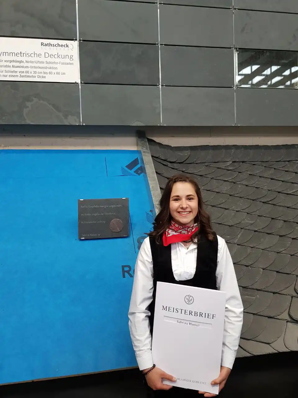 Seit 2016 ist auch Sabrina Hansel, die ihre Ausbildung zur Dachdeckerin 2016 abschloss und 2017 den Meistertitel im Dachdeckerhandwerk erwarb, aktiv im Betrieb.